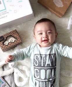 Nog een persoonlijk favoriet is het “Zoo” kraamcadeau! Een perfect cadeau anno 2021! Een verwenpakket voor zowel jongens als meisjes in de hippe trendkleur mint. Het knuffelaapje van Happy Horse is sowieso echt een absolute kindervriend! Dit luxe, goed gevulde kraamcadeau bevat ook twee fullsize Naïf producten. Namelijk de Milde badolie en de verzachtende bodylotion. Het bijt- en badspeeltje van Bambam Rubber Duck Ivory.
