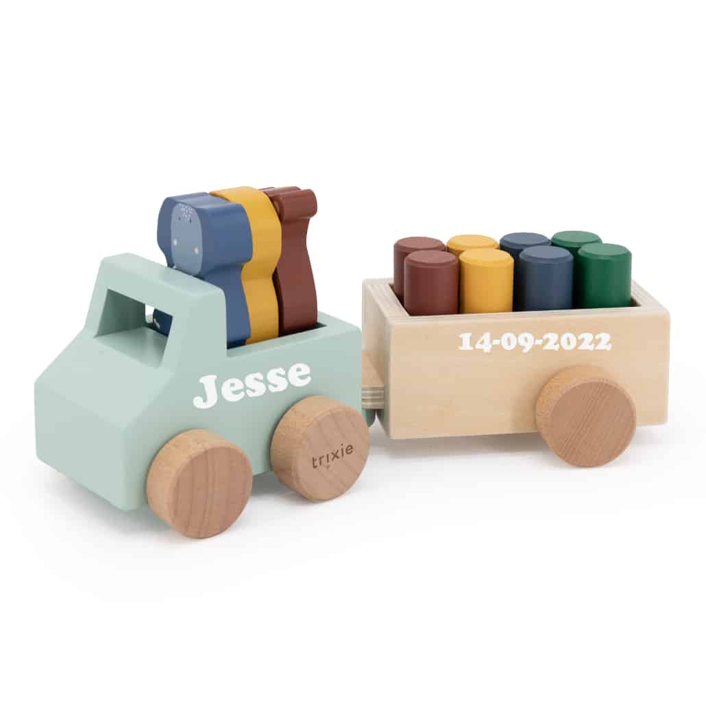 De auto en wagen kan voorzien worden van naamsticker en of geboortedatum