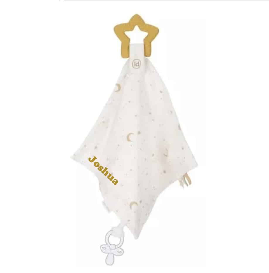 Dit doekje biedt de perfecte combinatie van troost en verlichting. Het zachte doekje geeft een gevoel van geborgenheid, terwijl de bijtring verzacht bij doorkomende tandjes. Licht en gemakkelijk vast te houden, ideaal voor kleine handjes die willen grijpen en ontdekken. Een lief en praktisch accessoire voor knuffelmomenten vol comfort!U kunt het personaliseren met een naam.