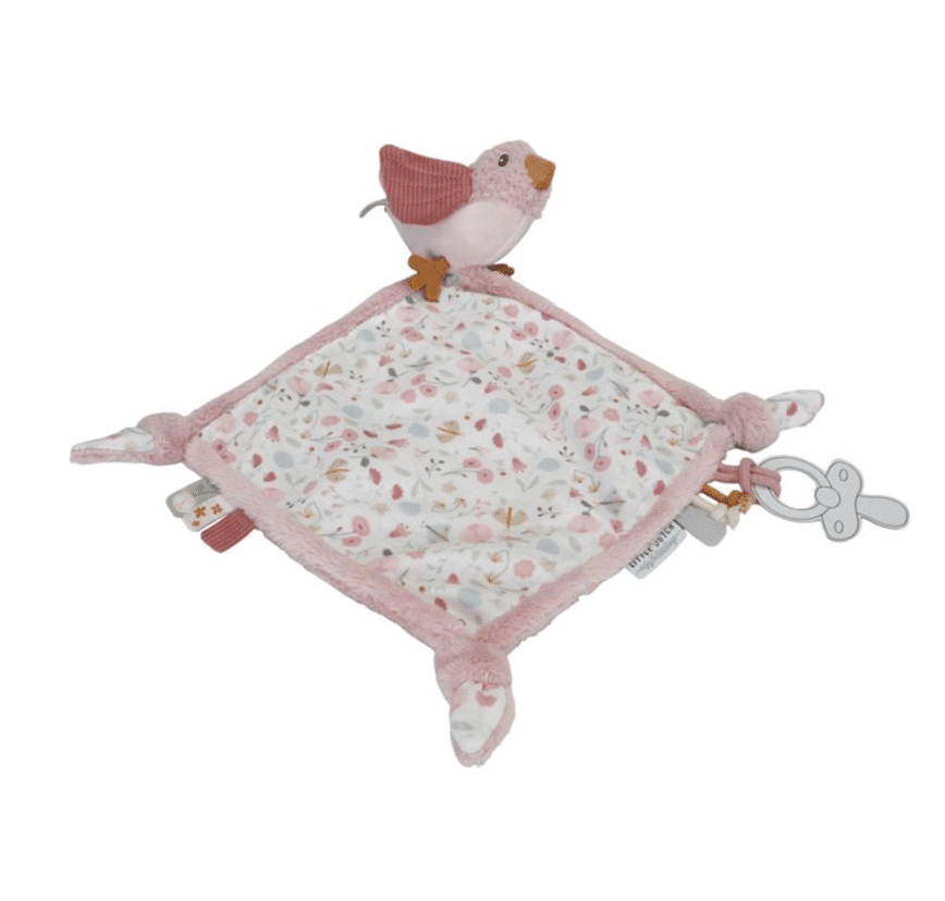 Zacht en zoet. Geen kinderkamer is compleet zonder een troostend knuffeldoekje binnen handbereik. Dat maakt het meteen een ideaal kraamcadeau. Deze variant van Little Dutch is versierd met onze nieuwe Flowers & Butterflies print. Het knuffeldoekje kalmeert en helpt een kleintje om in slaap te vallen. Het is voorzien van een zacht vogeltje, makkelijk vast te pakken knopen en leuke labels om te ontdekken. Oh, en je kunt gemakkelijk een fopspeen of bijtring bevestigen aan de katoenen lus.