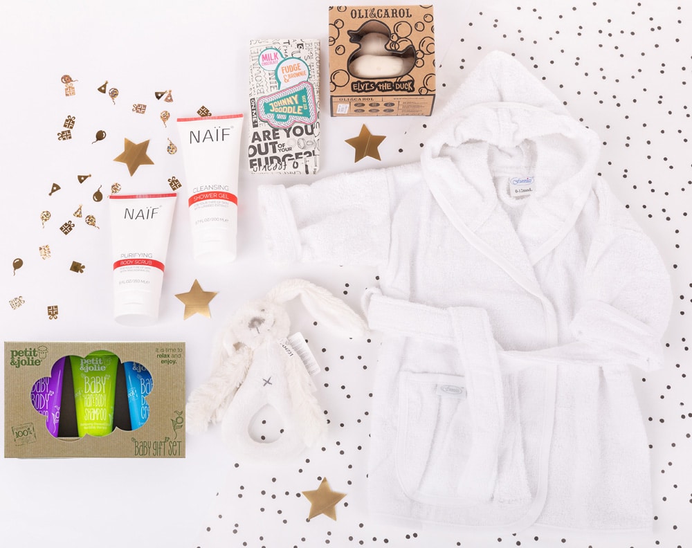 Deze box is speciaal samengesteld voor mama en baby. Perfect om te geven tijdens de zwangerschap of na de bevalling. De box bevat een heerlijke Cleansing Gel en een heerlijke bodyscub om de nieuwe Mama of Mama in spé te verwennen. Voor de baby bevat dit pakket een heerlijk giftset Petit Jolie met een leuk schattig badspeeltje en na de badbeurt kan de baby de heerlijk zachte badjas aan. En kan de baby weer lekker spelen met een rammelaartje Richie Rabbit. Ook bevat dit pakket nog een overheerlijke Johnny Doodle Chocolade reep voor papa en mama.