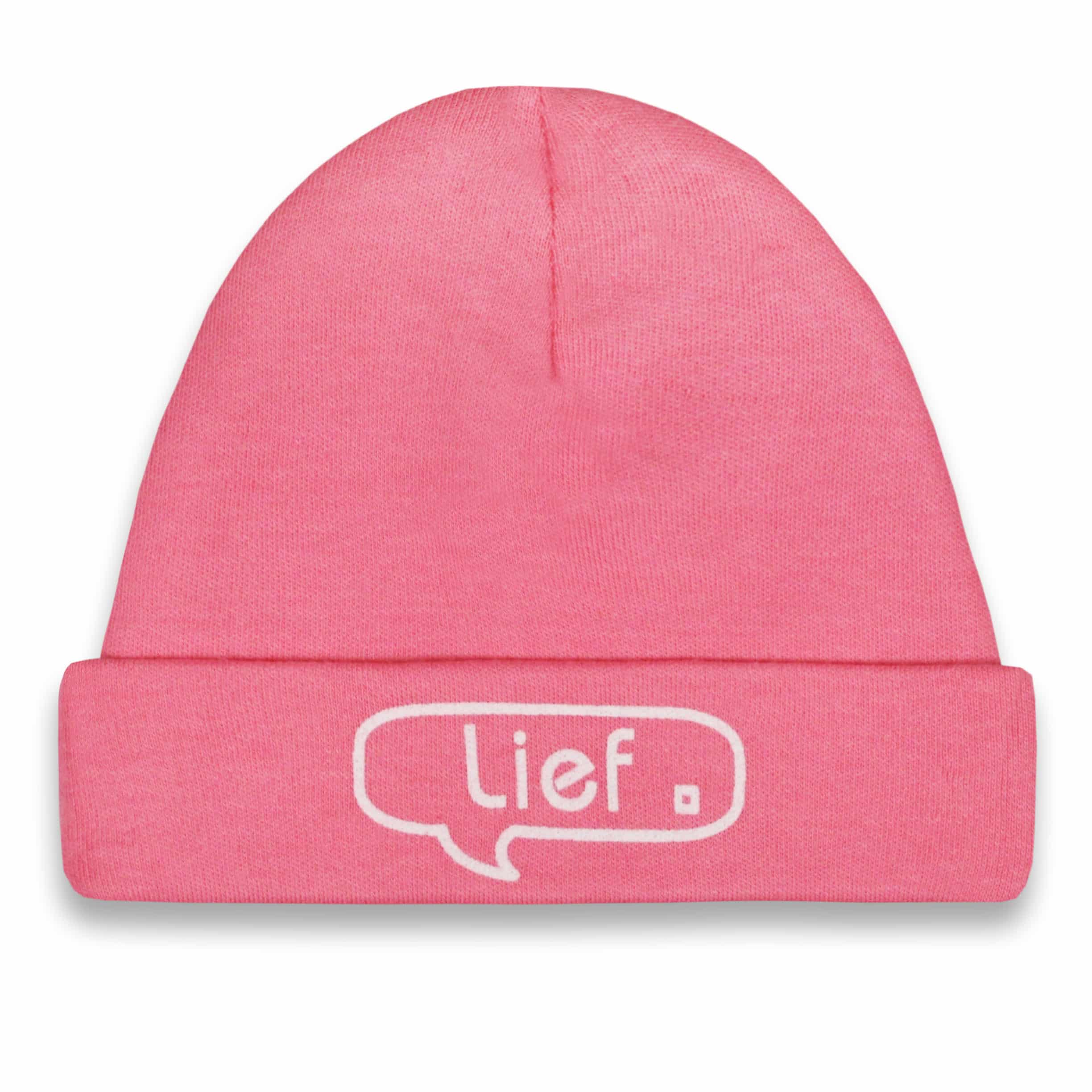 Super zachte basic babymutsje met de tekst lief. Het mutsje is speciaal voor de newborn, maat 50-56.