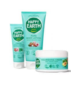 Pure, duurzame lichaamsverzorging! Deze producten bevatten alleen 100% natuurlijke ingrediënten waar jouw huid blij van wordt. Als je iets op je huid aanbrengt, is het fijn om zeker te weten dat er geen vervuilende en vervelende ingrediënten in zitten zoals chemicaliën of andere nare toevoegingen. Happy Earth Body Care bestaat uit: 🌿 Zachte body lotion. Happy body, happy you! De 100% natuurlijke, vegan body lotion is speciaal ontwikkeld voor de gevoelige en droge lichaamshuid. Biologische amandelolie en shea boter helpen de huid op een natuurlijke manier te hydrateren en verzorgen.