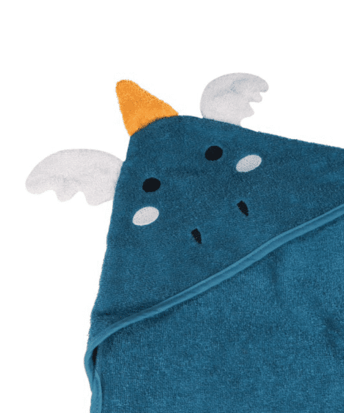 Deze badcape heeft een schattig gezichtje en de stekels van Dragon Diego wanneer het kindje de capuchon op zet. De badcape is gemaakt van zachte badstof en voelt fijn aan op het tere babyhuidje. De badcape is 75 x 75 cm groot en gemaakt van 100% katoen. De badcape mag gewassen worden in de wasmachine op 40ºC en is ook geschikt voor in de droger. Daarnaast mag de badcape gestreken worden.
