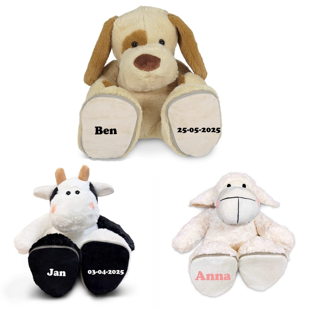 Maak kennis met onze gepersonaliseerde knuffel met naam op de voetjes – het perfecte cadeau voor geboorte, doop of verjaardag. Deze zachte, hoogwaardige knuffel wordt speciaal voor jou bedrukt met de naam van het kindje , waardoor het een uniek en persoonlijk kraamcadeau is.