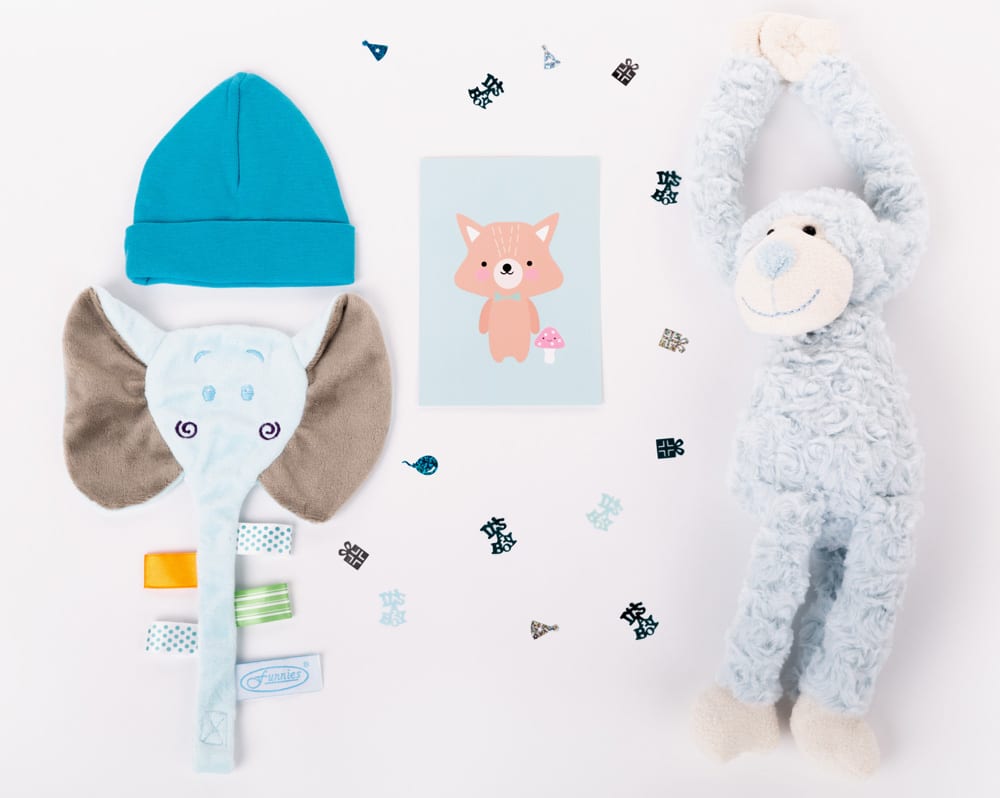 Lief kraamkado voor een Jongen! Het schattige blauwe aapje zorgt voor uren knuffelplezier en grote kans dat dit haar beste maatje zal worden. Het Olifantje is een spenenkoord waar je een speen aan kan hangen en is ook een super leuk speeltje. Het mutsje is gemaakt van 100% katoen en super zacht!