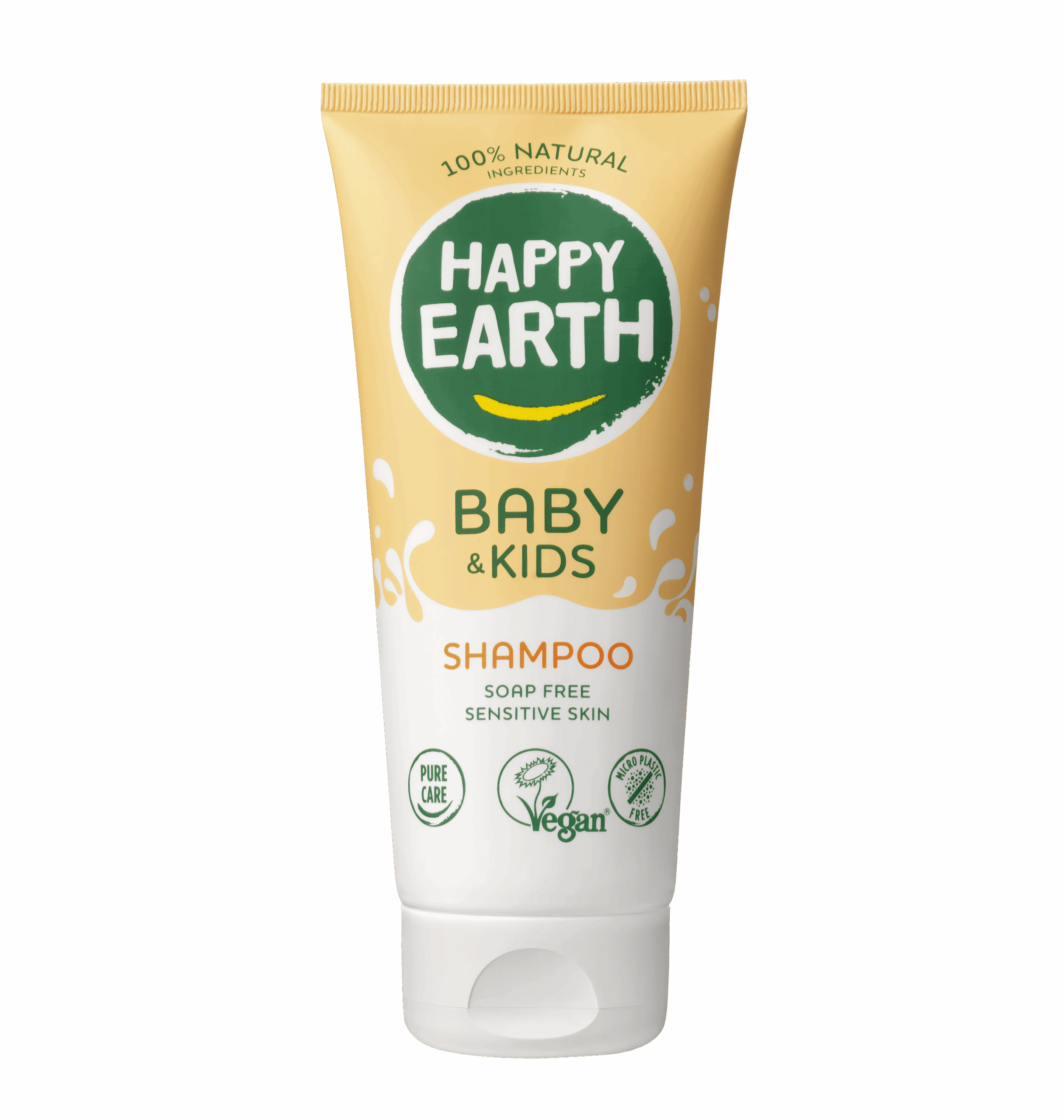 Happy Earth shampoo voor Baby & Kids bevat alleen 100% natuurlijke ingrediënten die zijn gecertificeerd door Natrue. Daarnaast bevat de shampoo 0% SLS/SLES en is deze zeepvrij, zodat je zeker weet dat je geen schadelijke producten aanbrengt op de huid van jouw baby. De shampoo is extra mild en verzorgend voor de gevoelige huid van baby’s en kinderen en is direct te gebruiken vanaf de geboorte. De shampoo heeft een heerlijk, allergeenvrijparfum en is biologisch afbreekbaar. Na gebruik van de shampoo zijn de haren van je baby zacht, makkelijk doorkambaar en ruiken heerlijk.