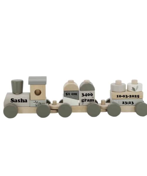 Laat de blokkentrein voorzien van de naam van het kindje. Extra opties zijn de geboortedatum, lengte, gewicht of tijdstip. Zo wordt het speelgoed echt uniek en een blijvende herinnering. - Kwaliteit en duurzaamheid