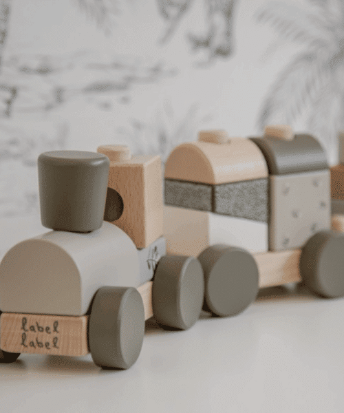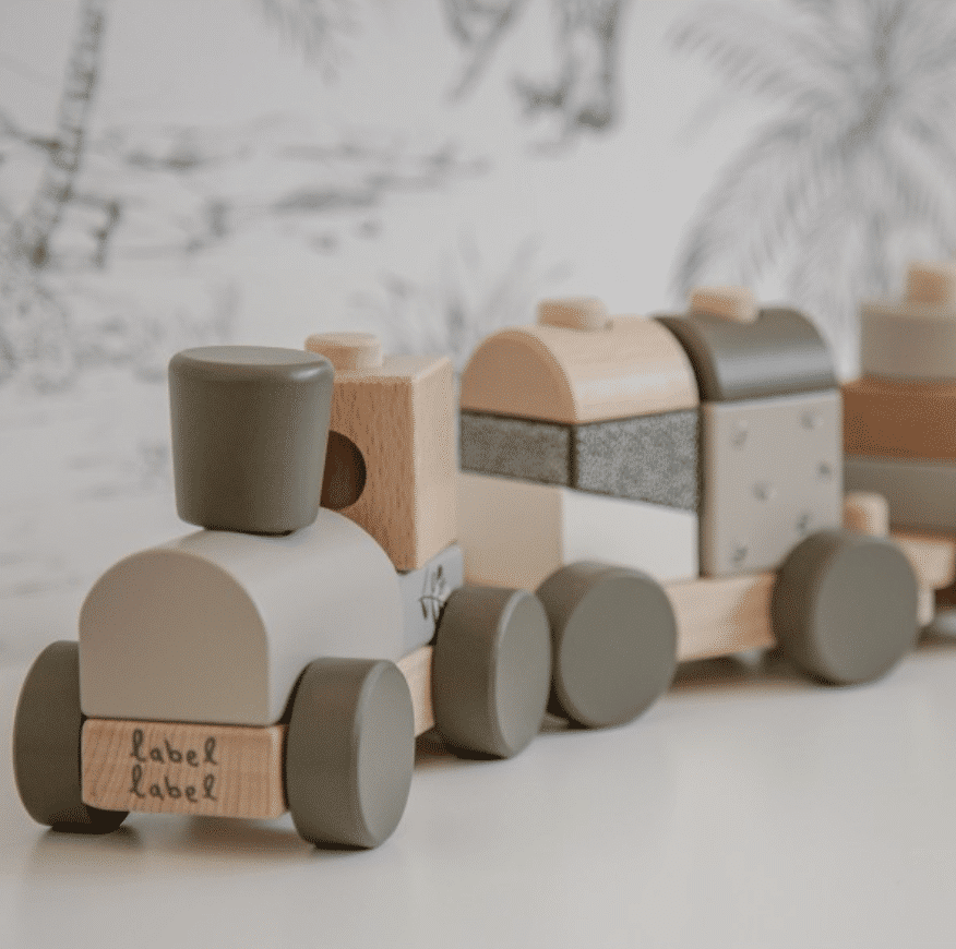 Dit houten speelgoed bevordert de fijne motoriek, het ruimtelijk inzicht én de verbeeldingskracht. De blokken kunnen los worden gebruikt om te stapelen, bouwen of puzzelen, terwijl de wagons kunnen worden gekoppeld. - Olijf kleur & stijlvolle uitstraling De combinatie van groene tinten met een accentkleur olijf maakt deze blokkentrein een sfeervolle toevoeging aan de kinderkamer. De zachte kleuren passen mooi bij moderne interieurstijlen.