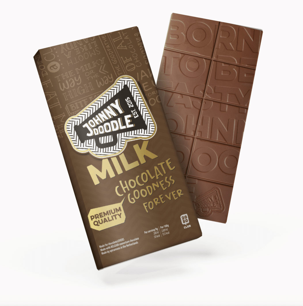 Johnny Doodle gebruikt premium couverture chocolade. Say what?! Couverture is de hoogste kwaliteit chocolade, door het hoge percentage cacao boter dat wordt gebruikt. Couverture chocolade wordt normaliter gebruikt door chocolatiers. We noemen het ook wel Johnny’s gold.