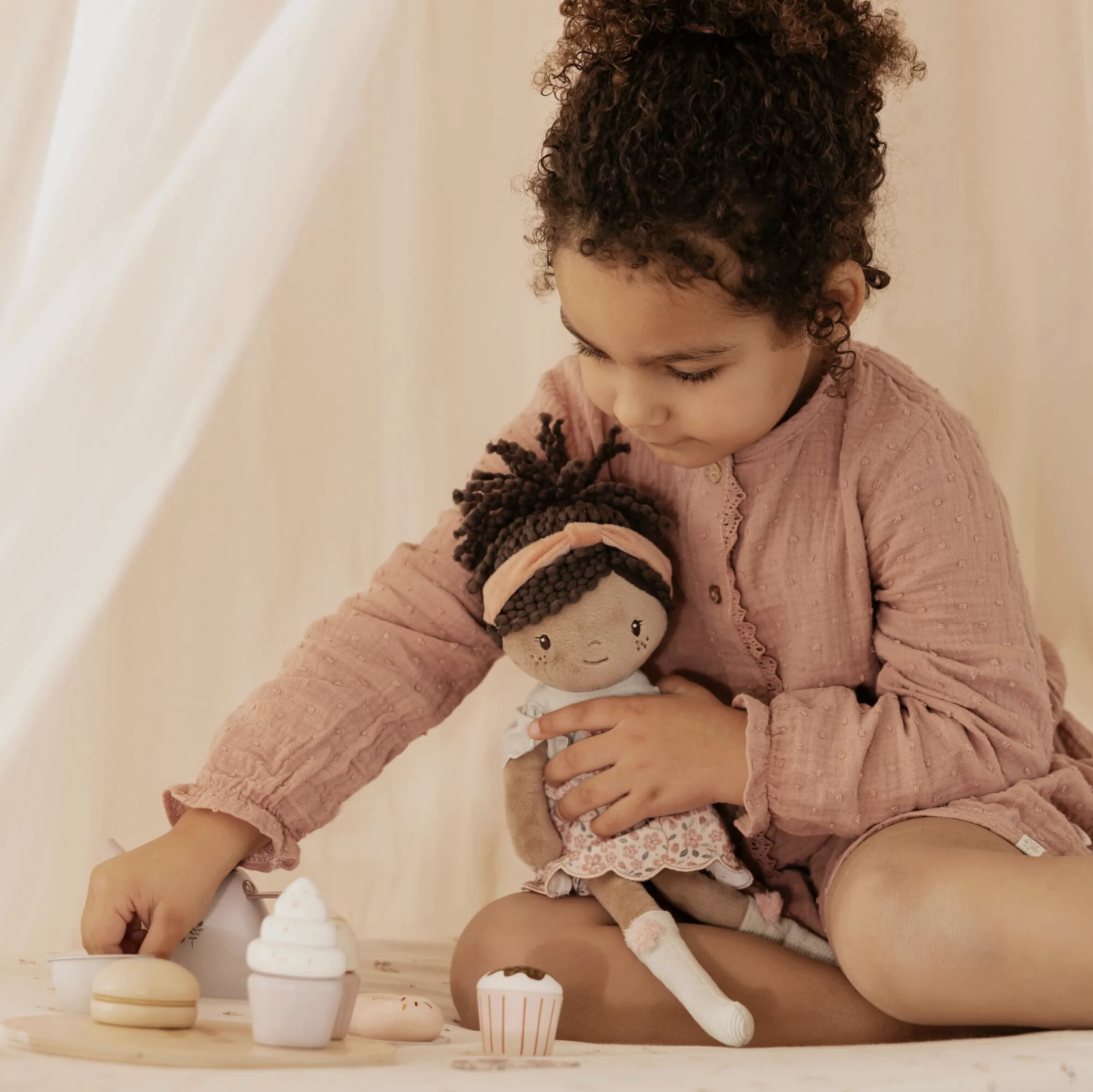 Maak kennis met knuffelpop Evi, jouw nieuwe zachte vriendinnetje. Met haar vrolijke bloemenrokje, laarsjes en krullende staart nodigt ze uit tot eindeloos knuffelen en samen spelen. Evi is heerlijk zacht en perfect om overal mee naartoe te nemen. Haar lieve uitstraling en mooie details maken haar een echte favoriet voor elk meisje.