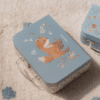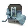 Het koffertje , zit boordevol luxe producten! Een heerlijk zachte badcape in het Stone Green en een labeldoekje in army kleur uit dezelfde lijn. De koffer is helemaal in groene stijl, het nachtlampje Dino is van het zelfde merk a Little Lovely Company en bevat een heerlijke natuurlijke shampoo van Naif . Op de koffer staat een afbeelding van Dino’s