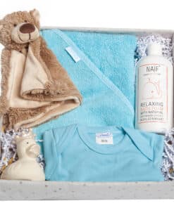 Het “Little Bear” kraamcadeau zit boordevol luxe producten! Een heerlijk zacht badcape in blauw kleur en een blauw rompertje. Lekker badderen met de badeend Ducky en een heerlijke natuurlijk Badschuim van Naif en daarna lekker slapen met knuffeldoekje Baggio van Happy Horse dat een heerlijke kroeldoekje is en super zacht!
