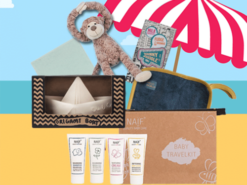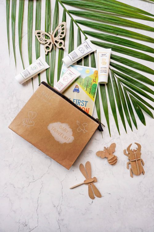 Ik ga op reis en neem mee… De Travel Kit! Ideaal voor op reis, vakantie of als je kroost uit logeren gaat. In de Naïf Travel Kit zitten vier handige producten, in reisformaat. Dus geen gezeur bij de douane. Ook fijn. Inclusief toilettas, gemaakt van recyclebaar karton. En we zijn nog niet klaar: je krijgt er ook een hydrofiele doek bij.