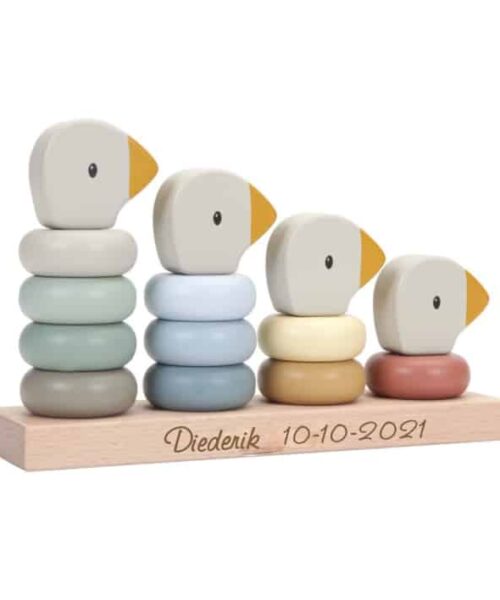 Mix en match de kleuren Little Goose en zijn familie. Deze stapelaar van 14 stukken leert je kindje te tellen van 1 tot 10 en stimuleert de hand-oogcoördinatie. Ook leuk als accessoire voor de kinderkamer.