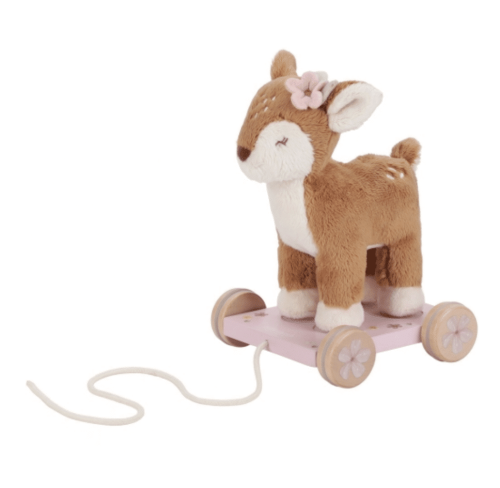 Neem het hertje met je mee! Trek aan het touwtje en ga samen op avontuur. Het hert zal je volgen door de betoverende tuin van Fairy Garden, waar de mooiste bloemen groeien en kleine feetjes zingen en dansen. Het zachte en knuffelige hert staat op een roze houten wagen versierd met bloemen. Met het kleine touwtje kan je kindje haar het hele huis laten zien en heerlijk spelen. Het schattige trekdier zal aanmoedigen om te lopen en helpen bij de motorische ontwikkeling.