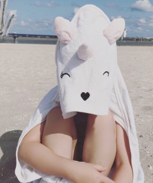 Dankzij de grote maat past de eenhoorn handdoek zowel bij kleine als grotere kinderen.